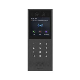 Interphone vidéo Android SIP avec reconnaissance faciale et écran 7'' 1080p. Caméra 2MP Grand angle. IK06 Façade aluminium. + Caméra auxiliaire 1MP contre l'usurpation identité + accès Bluetooth + capteur biométrique. Disponible en noir. Prévoir boitier montage.